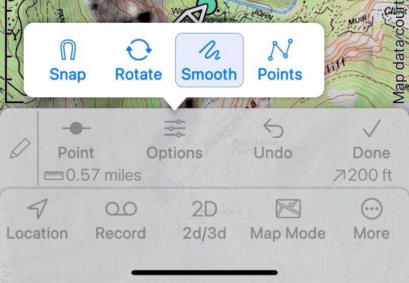 - Sets Smooth Mode; the route will be made up of many points close together forming a smooth curve.