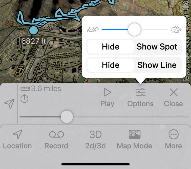 This button is enabled when a track or route is selected. Tap to “fly”