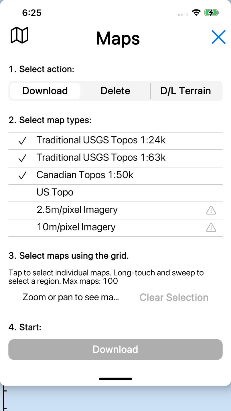 Show the Maps screen, where you can download (and delete)