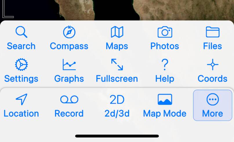 This button is shown when a track or route is shown. It presents a menu of