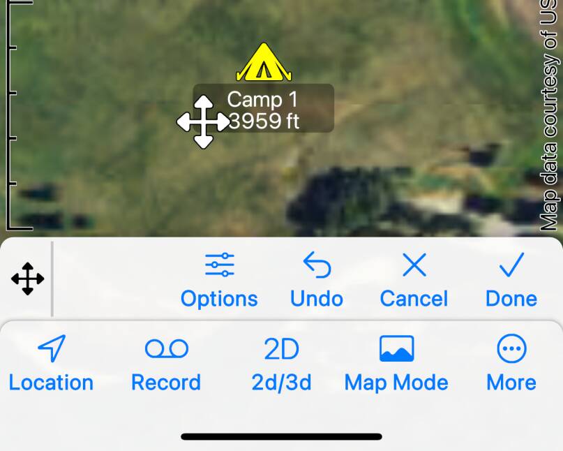This button is enabled when a waypoint is selected. Tap to move the waypoint. A