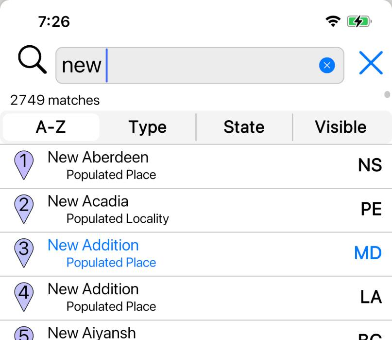Search results at locations for which you have downloaded detailed maps are