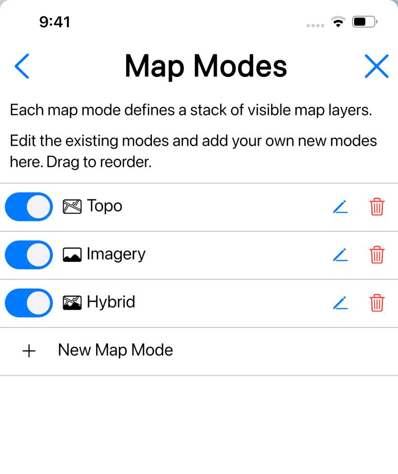 By default the app offers three map modes - Topo, Imagery and Hybrid - but