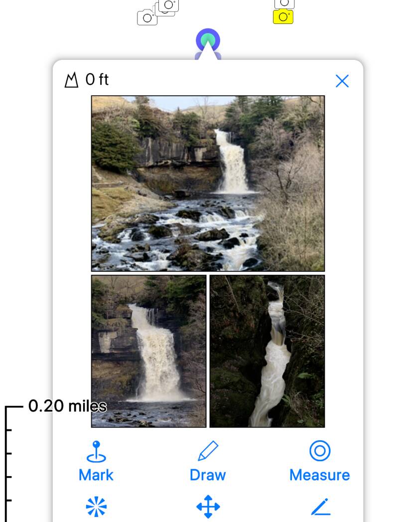 Topo Maps 2 can show photos from your iOS photo library on the map.